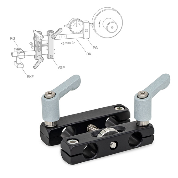 Speziell für den Aufbau von Mess- oder Prüfeinrichtungen wurde der Parallel-Klemmhalter mit Verstellspindel entwickelt, der eine schnelle und präzise, zweistufige Justierung von Sensoren, Messdosen oder Positions-anschlägen ermöglicht.